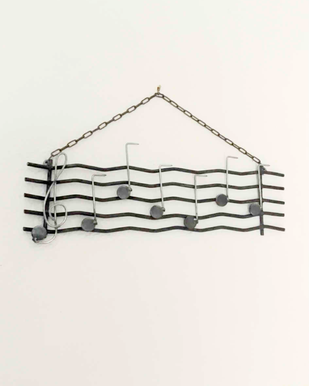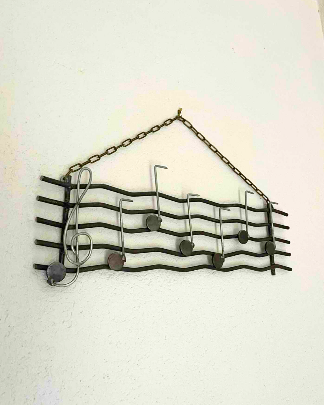 Un casier à bouteille découpé et quelques soudures plus tard, voici une décoration murale à suspendre chez soi, pour les amoureux de musique et de recyclage.