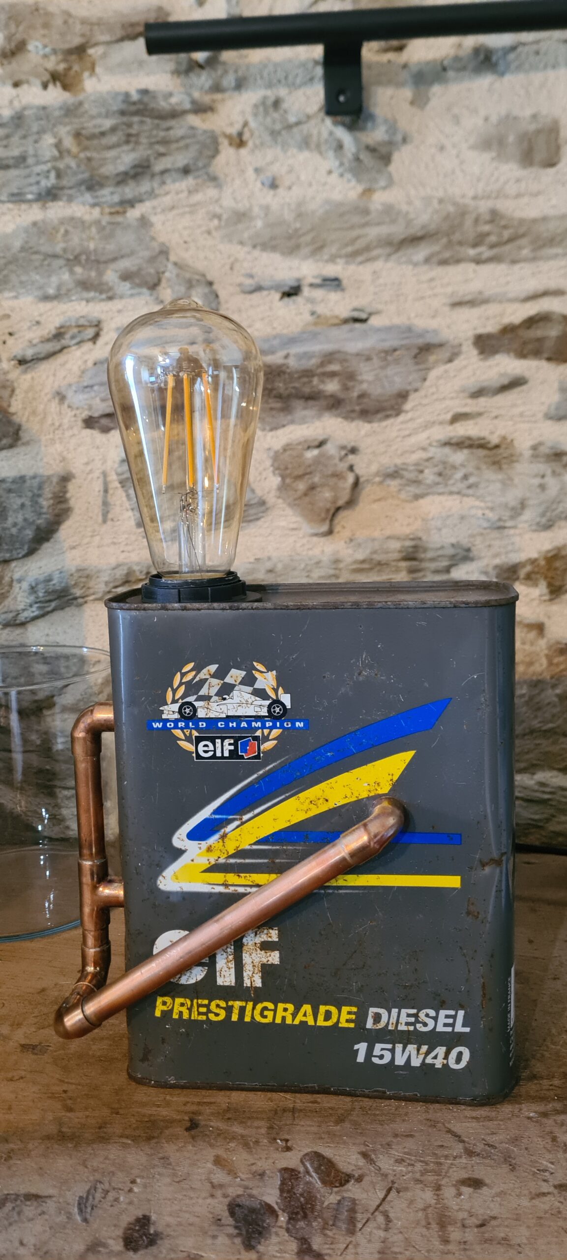 Chaque lampe est unique. Fabriquées à la main avec des matériaux de seconde main, ces lampes peuvent présenter des traces de leur histoire, qui ajoutent du charme et de l’authenticité (bidons rouillés ou annotés, pièces de cuivres usagées).