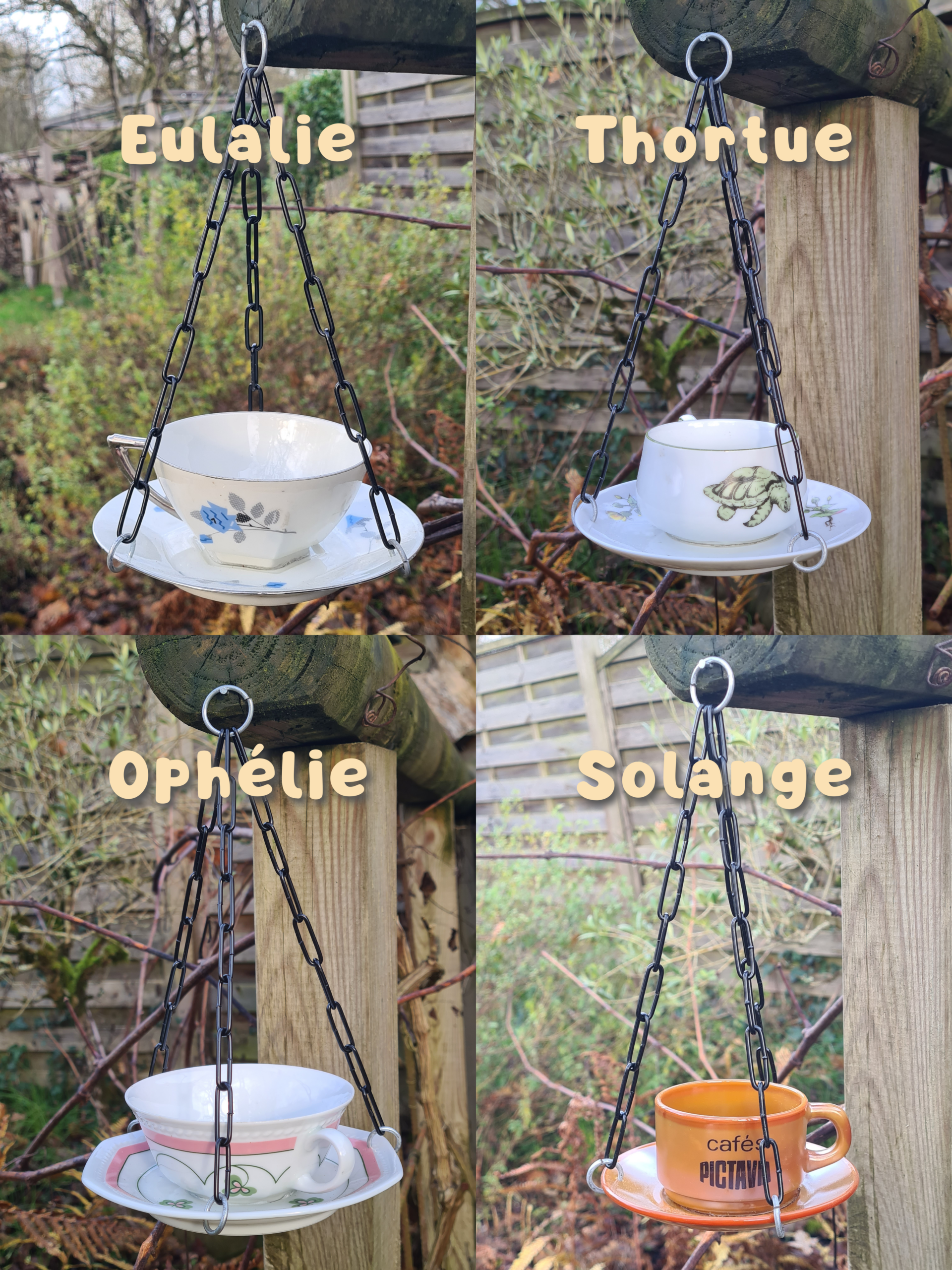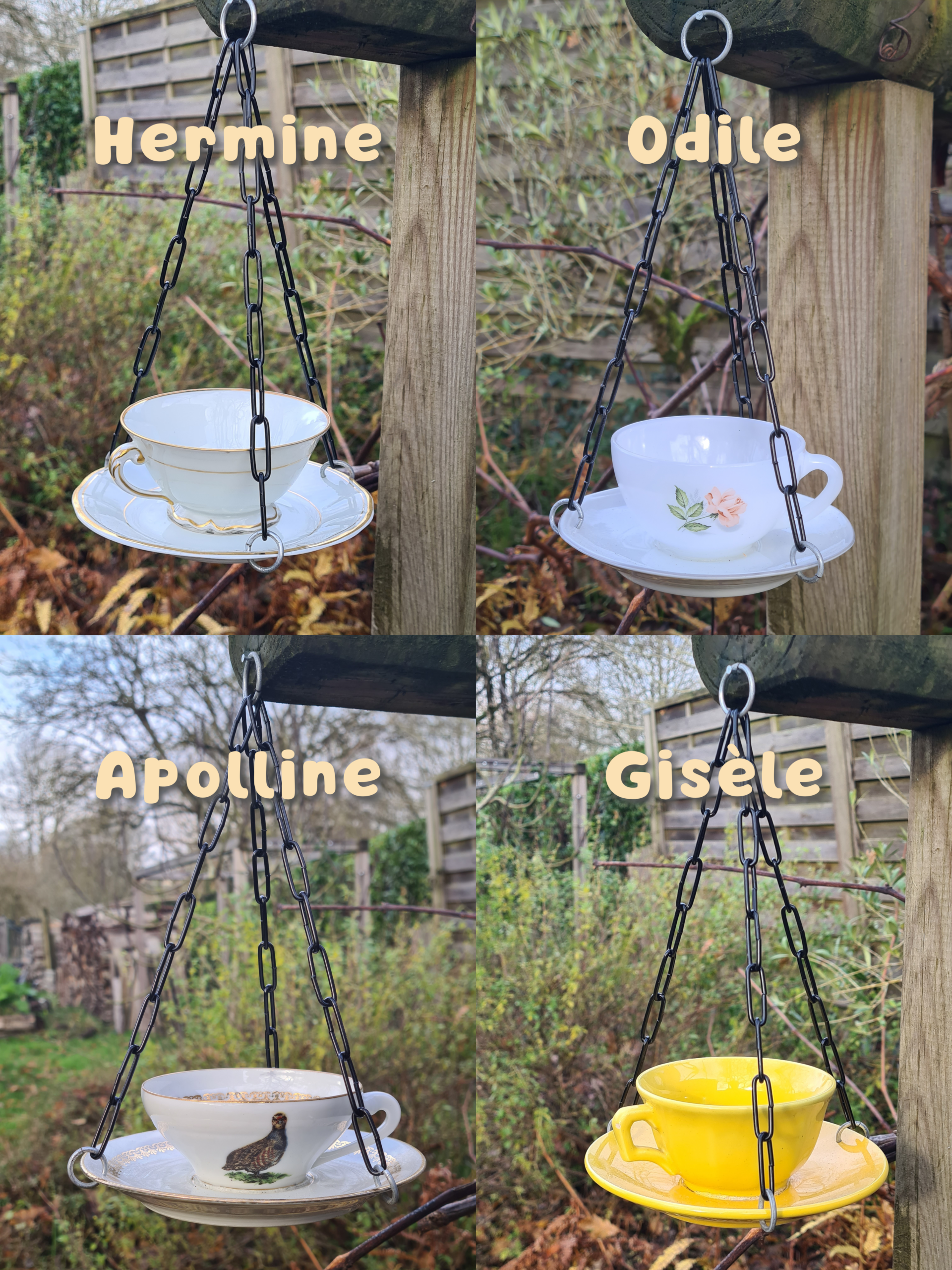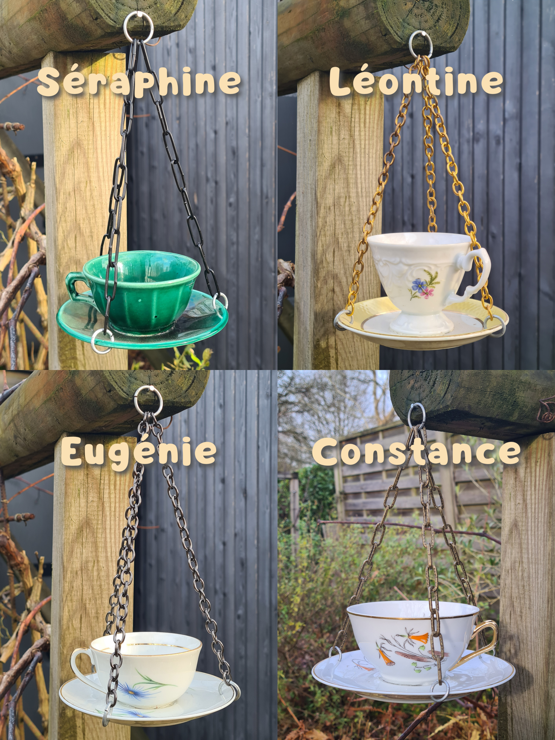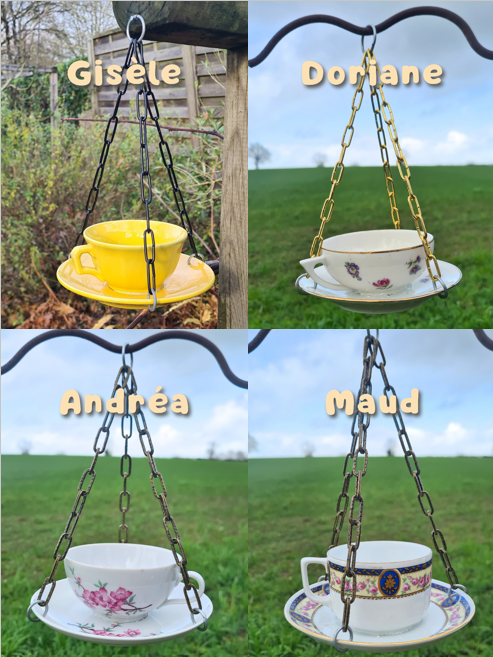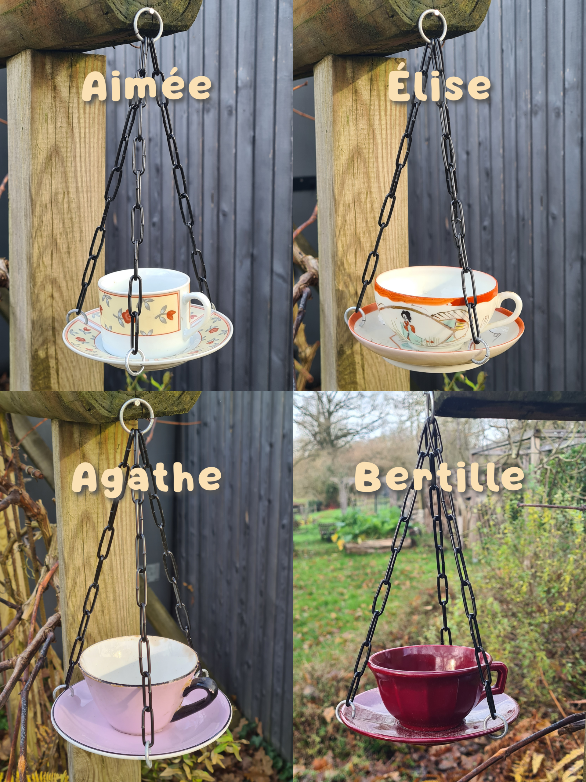 Une jolie mangeoire à oiseaux fabriquée avec de la vaisselle ancienne et vintage… quoi de mieux pour décorer vos jardins, être utile à la faune et soutenir l’upcycling ?