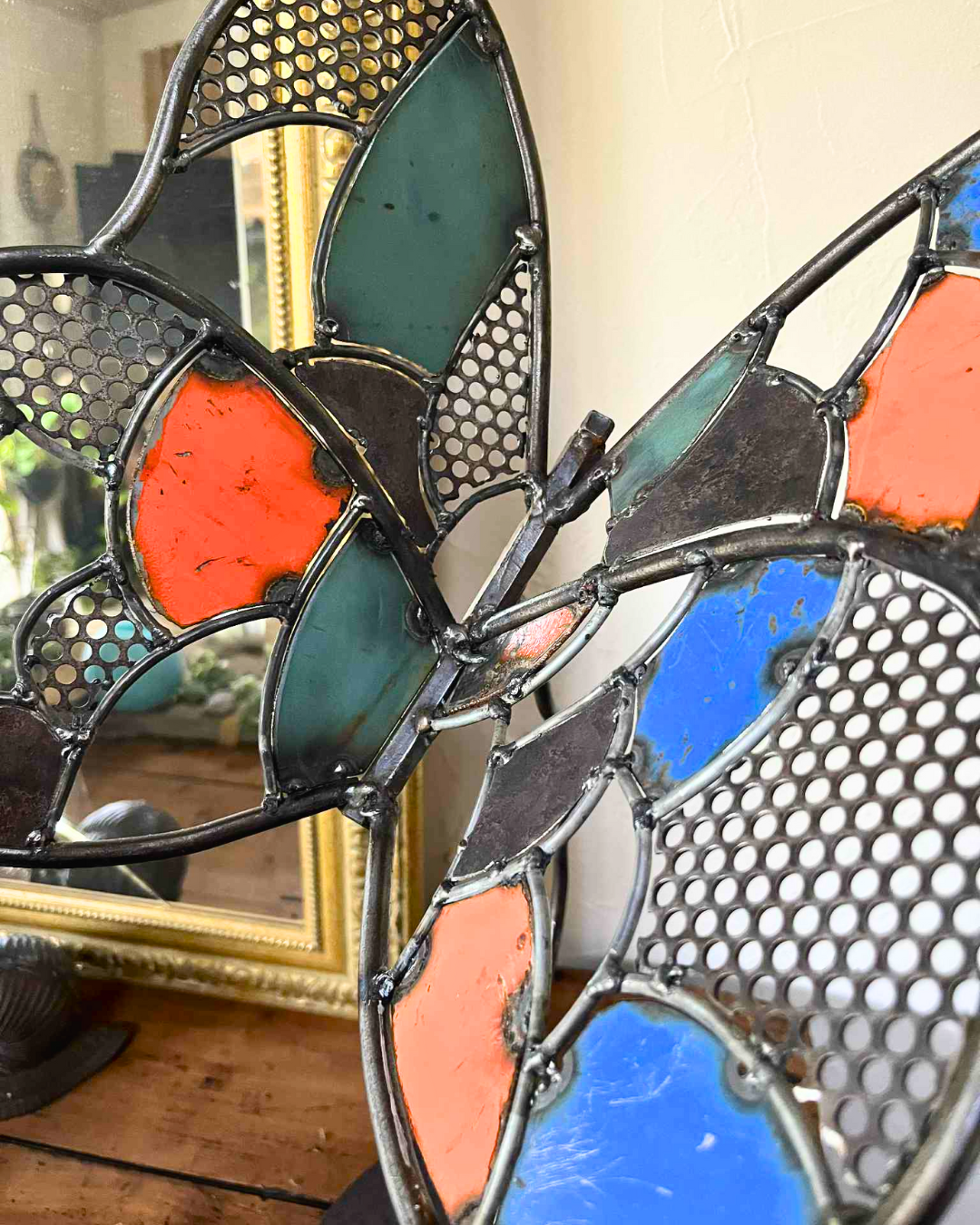 • Matériaux : chutes de tôles perforées, bidons colorés, morceaux de métal divers